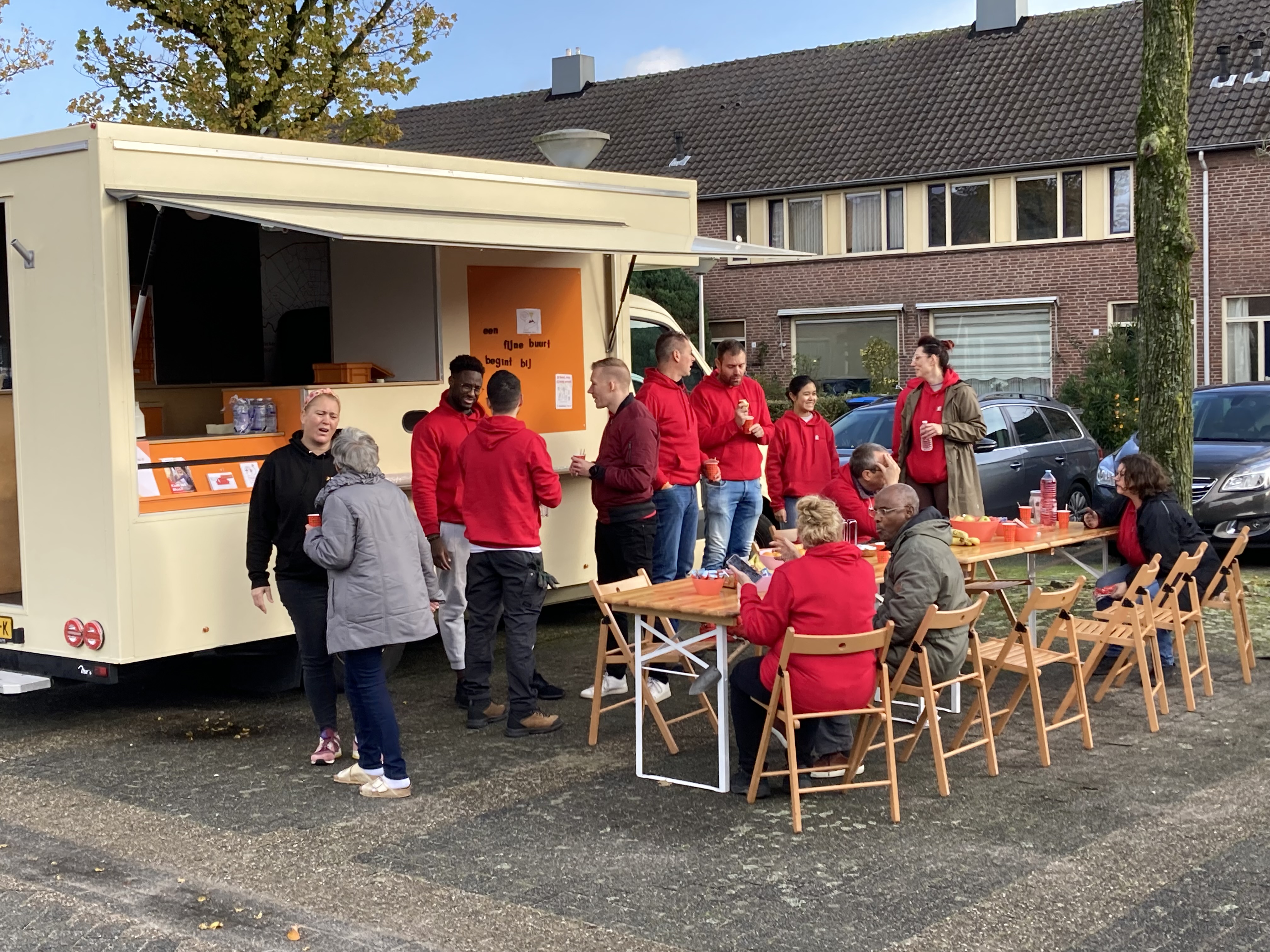 De nieuwe tuinen zorgden voor een grote glimlach bij de 3 bewoners. Zij zijn erg blij en dankbaar. En het buiten bezig zijn, zorgde voor verbinding tussen bewoners, vrijwilligers en de aanwezige organisaties. Extra gezellig met wat te drinken en iets lekkers van de Buurtbus van WIJeindhoven. Bewoners van de Tomatenstraat konden ook genieten van een lunch in De Huiskamer. Verzorgd door vrijwilligster Halima en de firma Edwards. Het was een mooie, actieve en groene dag! Dankjewel aan iedereen die geholpen heeft!