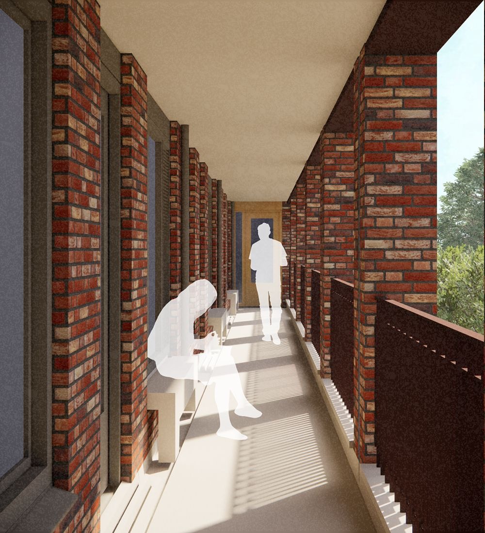 De buurt Kerstroosplein staat erom bekend dat bewoners elkaar graag even ontmoeten voor een praatje in de straat. Om dat ook hier mogelijk te maken, komen er op de galerijen speciale brandveilige bankjes. Zo kunnen bewoners van de nieuwe appartementen gemakkelijk met elkaar bijpraten.