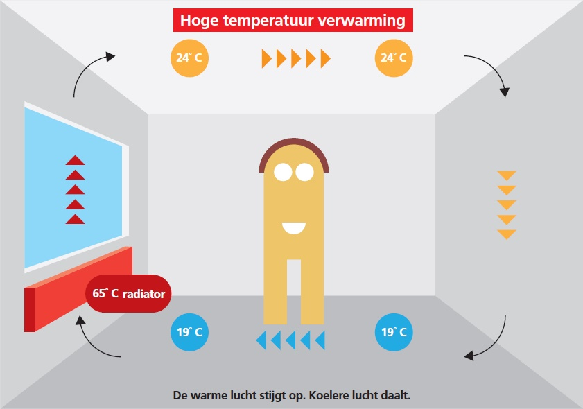 Opwarmen duurt langer: Als je de temperatuur verhoogt, kan het enkele uren (tot 24 uur) duren voordat je verschil voelt.