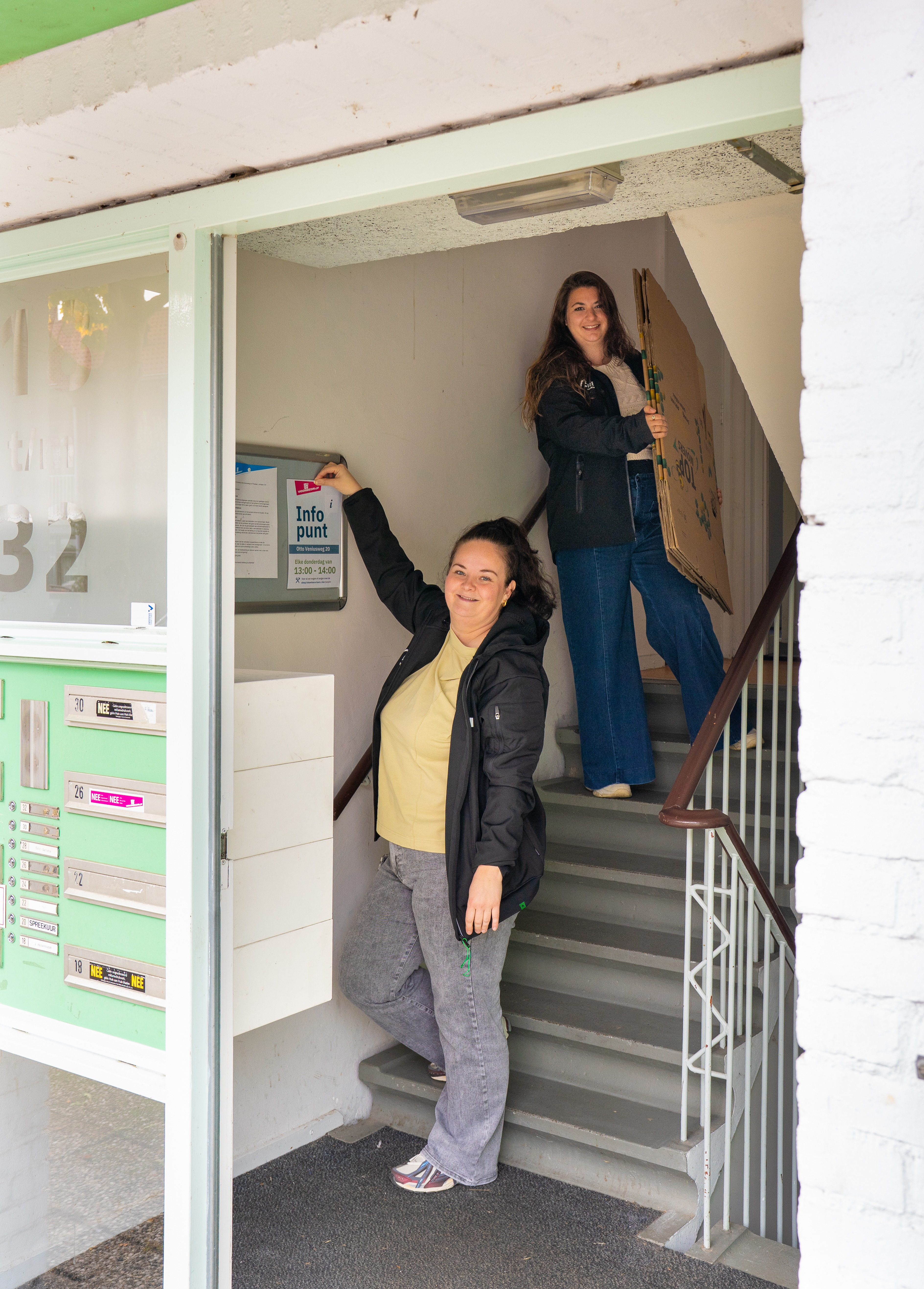 Soms gaan Fenna en Marsha ook met bewoners mee. “Laatst nog met een vrouw naar Cure. Om stickers voor witgoed te halen, zodat ze die aan de straat kan zetten. En met een man naar een woning die hij graag wilde. Omdat hij slecht Nederlands sprak. Er waren spullen ter overname. Daarin heb ik bemiddeld en uitleg gegeven. Dat vond hij heel fijn.”