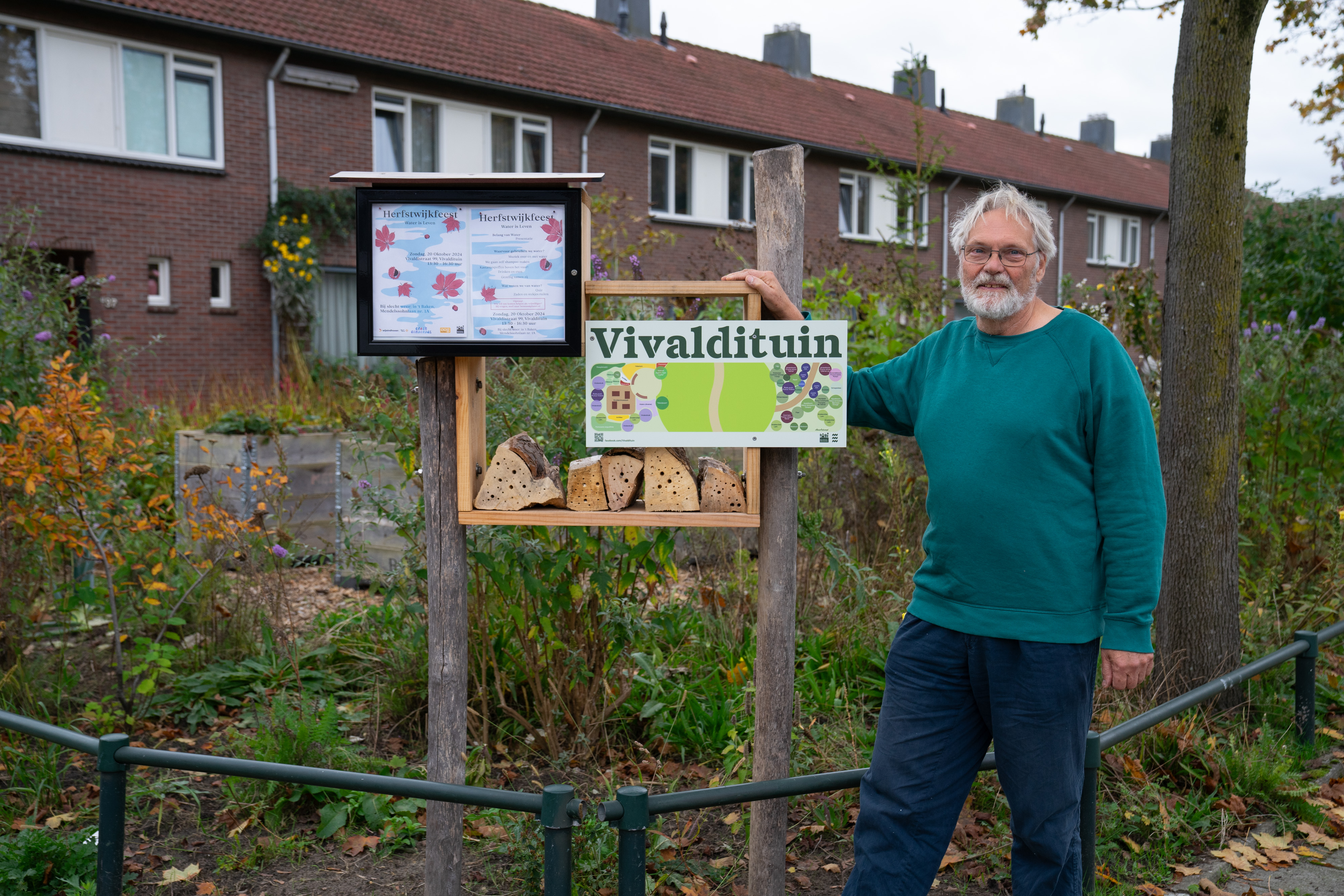 De gemeente zorgde voor het grondwerk en de bewoners kozen planten en bomen. Almar hielp bij de uitvoering, maakte bankjes en legde samen met de bewoners de tuin aan. Corona gooide even roet in het eten. Maar uiteindelijk werd de Vivaldituin feestelijk geopend. Ben onderhoudt de tuin niet alleen. Hij krijgt elke week hulp van mensen van ‘Doe Mee Met 4W’. En via het Buurtfonds helpt Almar nog steeds met het opzetten van activiteiten en betrekken van bewoners.