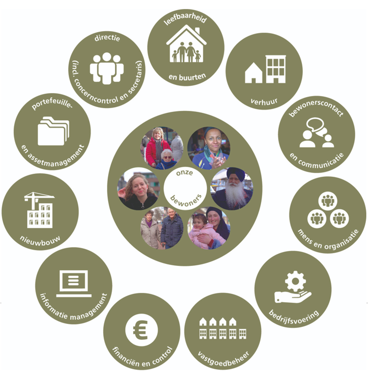 Wij willen onze doelen bereiken vanuit één organisatie met één manier van werken. Ons doel is zorgen voor goed wonen in een fijne buurt. Dit betekent iets voor onze juridische structuur. We kiezen er in principe voor om geen extra organisaties op te richten. We doen dit alleen als die écht nodig zijn om onze doelen te bereiken of risico’s te beperken.