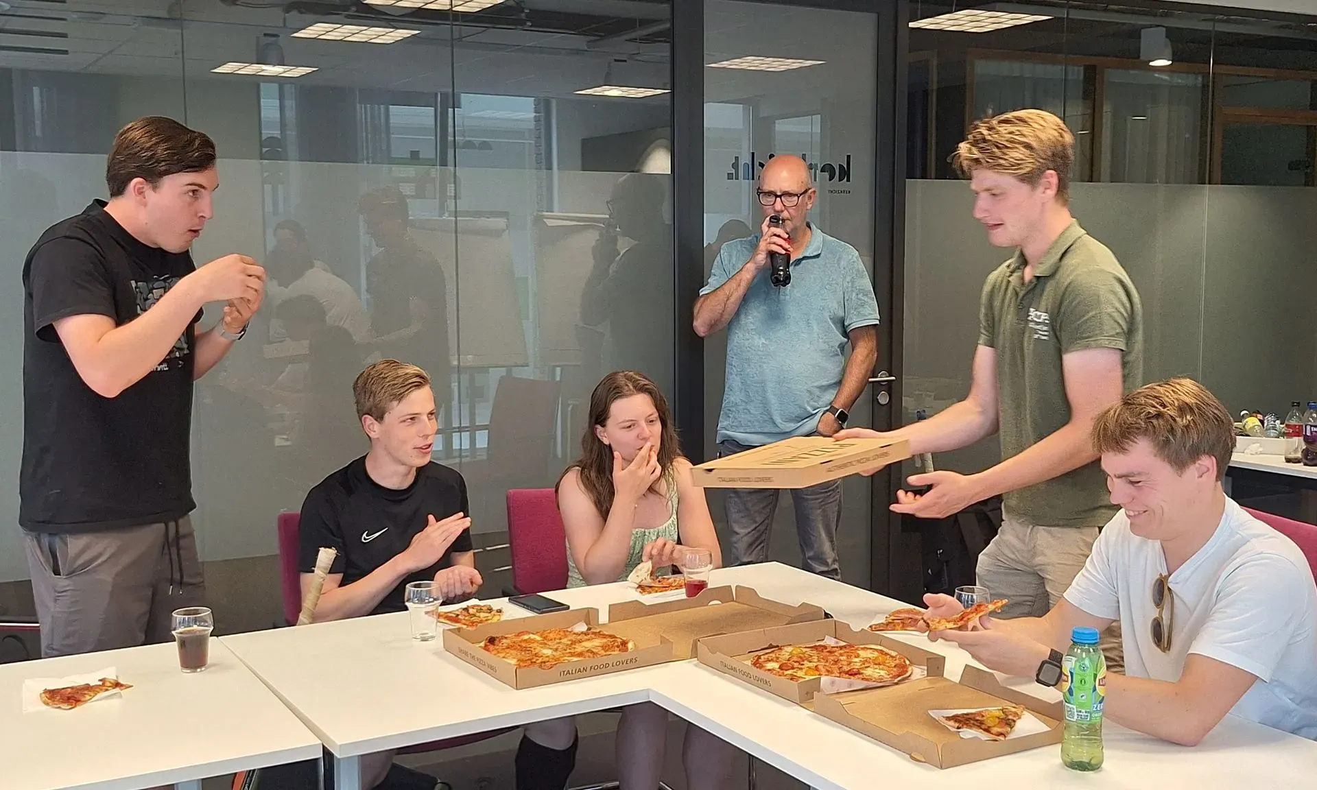 Tijdens keukentafelgesprekken haalden we de wensen van de studenten op. We presenteerden de plannen tijdens pizza-avonden bij ons op kantoor. De studenten zijn daardoor goed op de hoogte van de plannen en stellen kritische vragen over de werkzaamheden. Huisoudste Prins Hendrikstraat Olivier: "Wat fijn dat jullie ons op deze manier betrekken bij de plannen. En een gratis pizza-maaltijd is nooit verkeerd natuurlijk!"