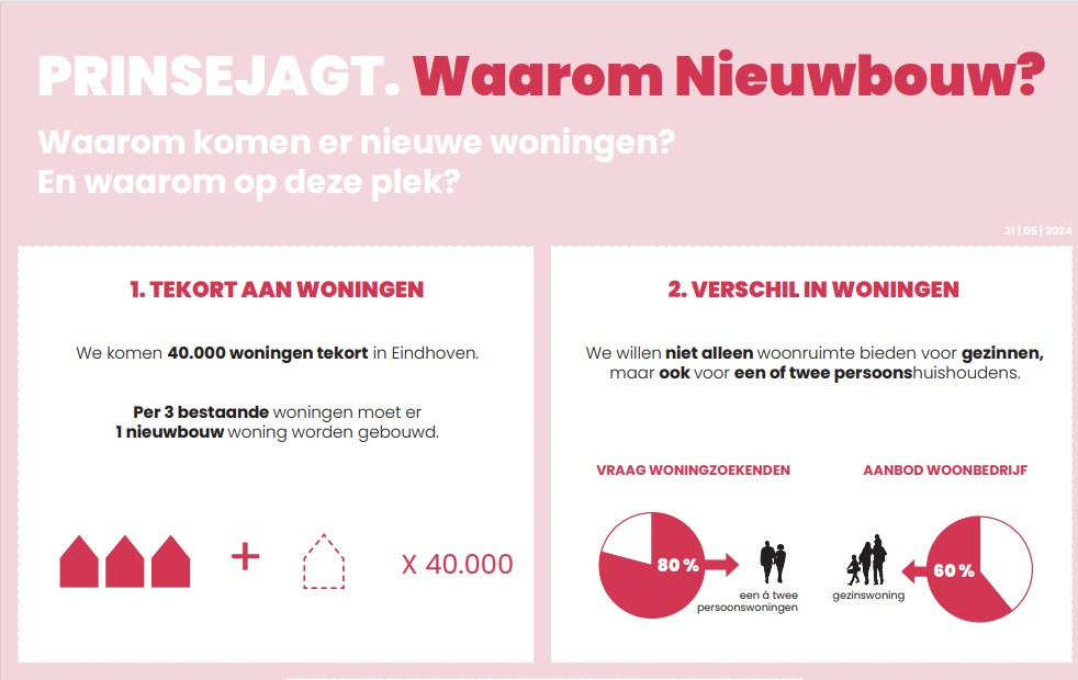 Aan de noordkant van de wijk Prinsejagt, waar nu nog 42 eengezinswoningen staan, gaat Woonbedrijf een nieuwbouwplan ontwikkelen. De woningen maken plaats voor appartementen, omdat de vraag naar woningen voor 1 en 2 personen erg groot is.