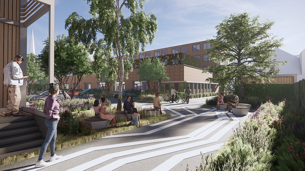 Voor de ontwikkeling van de Tramstraat hebben we een aantal keer gesprekken gehad met de buurtbewoners. Uit deze gesprekken kwam naar voren dat de buren heel graag een groen gebied willen. Samen met MTD Landschapsarchitecten heeft Woonbedrijf een groene, open ruimte laten ontwerpen voor de bewoners. Natuurlijk is houden we rekening met de uitstraling, maar ook met de biodiversiteit. Er komen bomen en planten waar vogels en dieren graag in zitten.